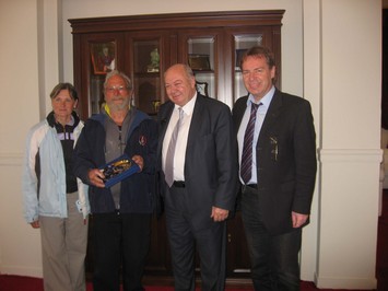 Η δημοτική αρχή της Κεφαλονιάς, με επικεφαλής τον δήμαρχο Γιάννη Παρίση και τον αντιπεριφερειάρχη Σωτήρη Κουρή και την συνδρομή του προέδρου της Δημοτικής Ενότητας Αργοστολίου Λ. Νιφοράτου και του αντιδημάρχου τουρισμού Ε. Κεκκάτου, ανέλαβαν την ξενάγηση του Ζαν Ντεμποσέτ και της συντρόφου του, Πασκάλ.