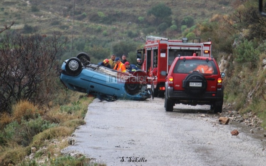 Ένας τραυματίας από πτώση οχήματος σε γκρεμό κοντά στα Κουρουκλάτα (Ανανεωμένο - Εικόνες + video)