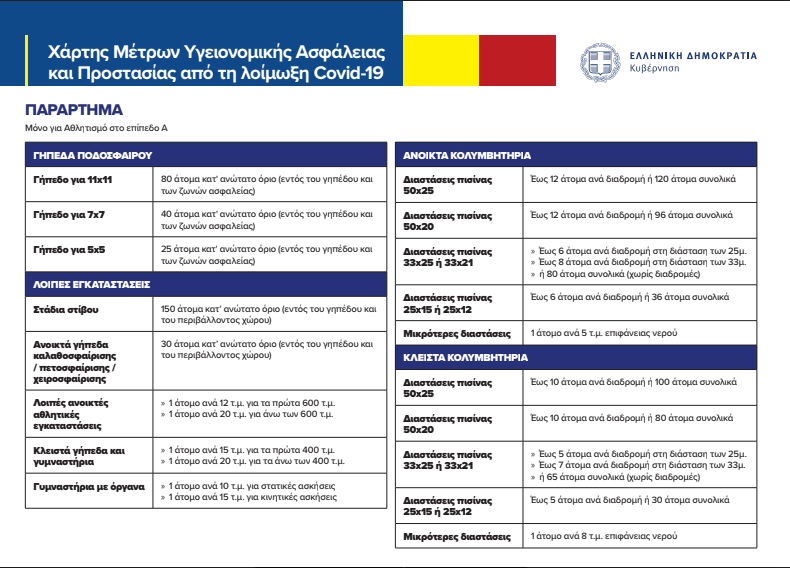 » Μείωση στο 75% του μέγιστου αριθμού αθλουμένων ανά εγκατάσταση (βλ παράρτημα)