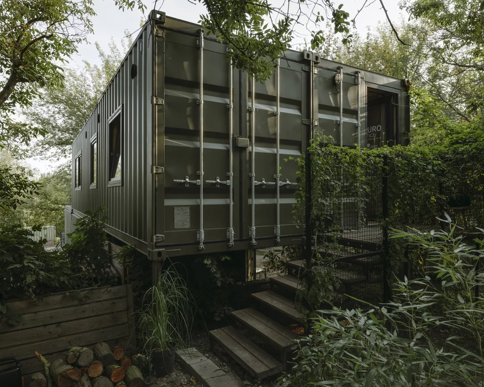 Το σπίτι αυτό στην πόλη Πόζναν της Πολωνίας αποτελείται από δύο υπερυψωμένα containers που τοποθετήθηκαν προσωρινά σε ένα οικόπεδο πλάι στο πάρκο Szelagowski, συνθέτοντας ένα λειτουργικό καταφύγιο που δεν στερείται καθόλου τις ανέσεις μιας τυπικής πολυτελούς design κατοικίας. Οι ιδιοκτήτες της διαρκώς μετακινούμενης καμπίνας 55 τμ είναι άνθρωποι που λατρεύουν τη νομαδική ζωή, να ταξιδεύουν διαρκώς και να αλλάζουν συχνά τόπο κατοικίας. Μιας και εργάζονται από το σπίτι, οι διαρκείς μετακινήσεις είναι εφικτές και αποτελούν μια διέξοδο από τις δεσμεύσεις της σύγχρονης ζωής.