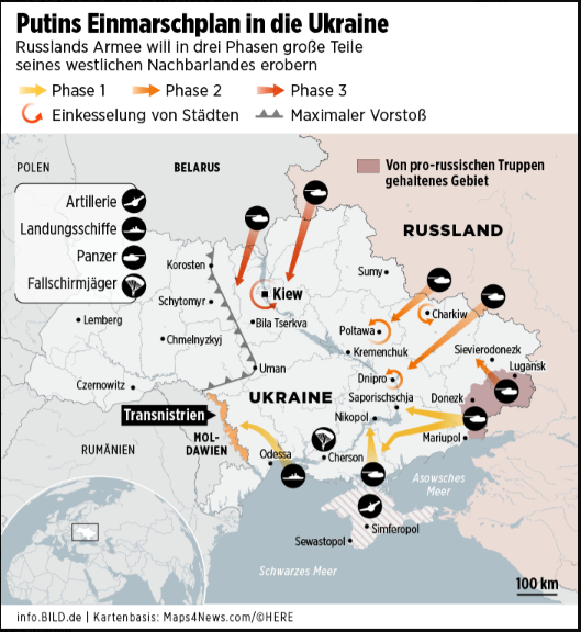 ︎ Τα αμερικανικά μέσα ενημέρωσης ανέφεραν το βράδυ της Παρασκευής ότι οι μυστικές υπηρεσίες των ΗΠΑ είχαν πληροφορίες ότι ο Βλαντιμίρ Πούτιν είχε ήδη επίσημα αποφασίσει να εισβάλει στην Ουκρανία, αναφέρει η Bild.